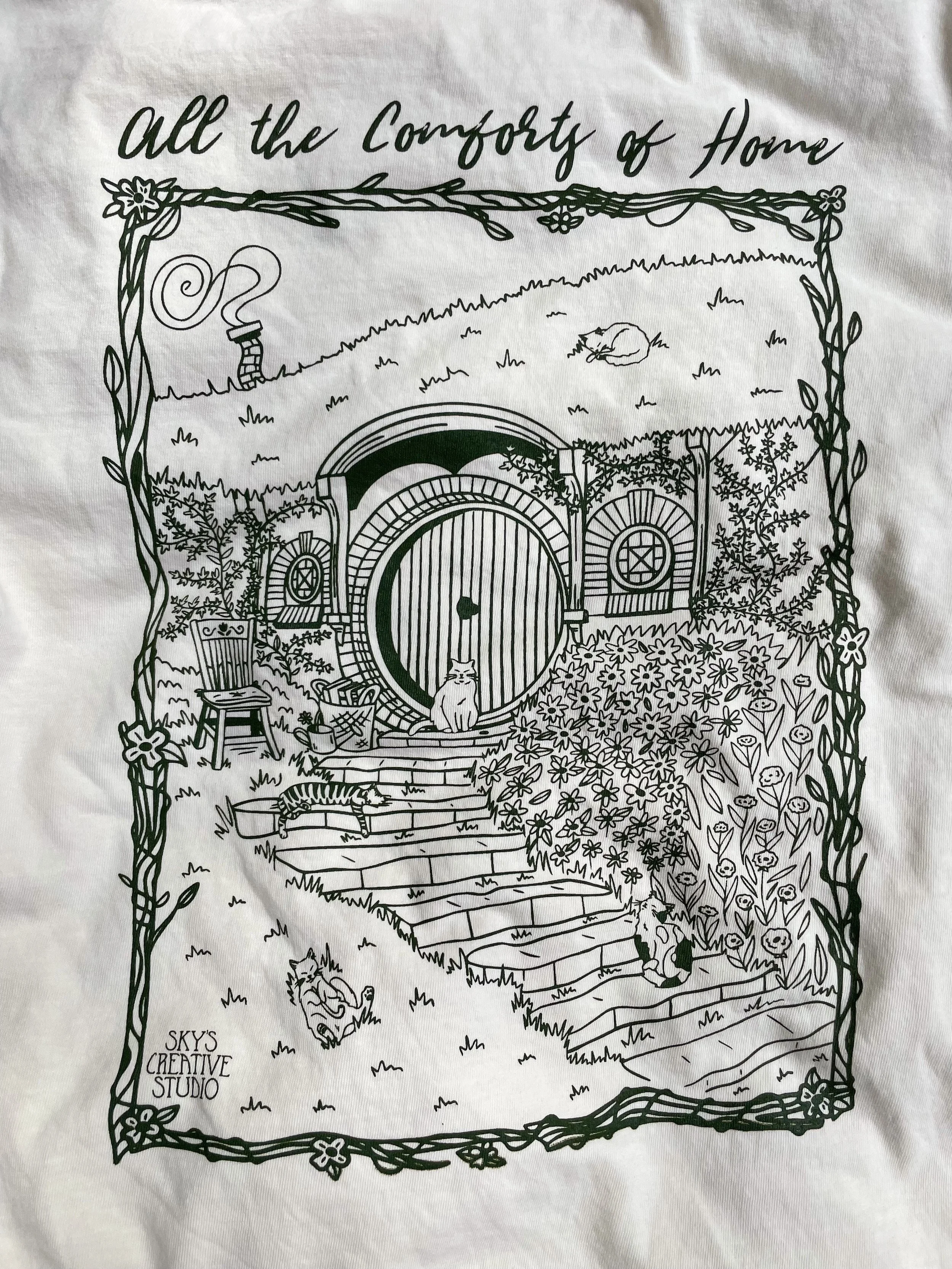 How many cats of Hobbiton can you find?! Also, featuring a Gandalf wizard cat to keep you company on the left chest. Created for fun, this is a parody design. Sketched with love, digitized in Procreate. Human-created <3